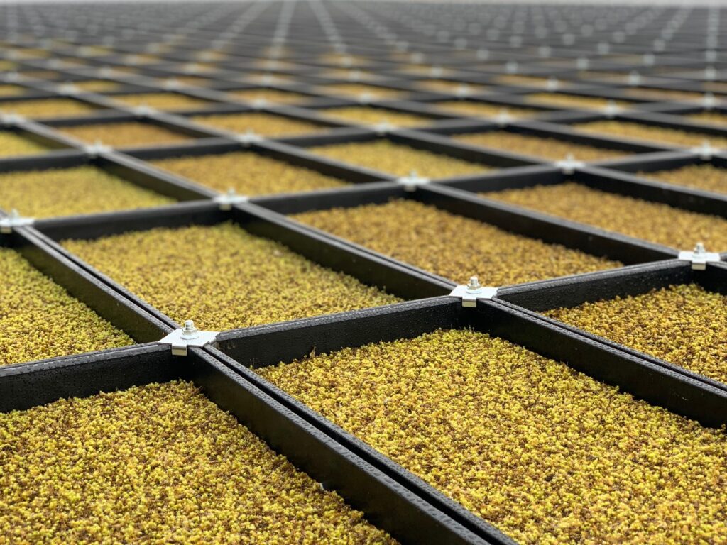 実際に屋上や壁面を苔で緑化する際には、トレーやパネルなどに苔を生育させたものを用いる方法が多く取り入れられています。