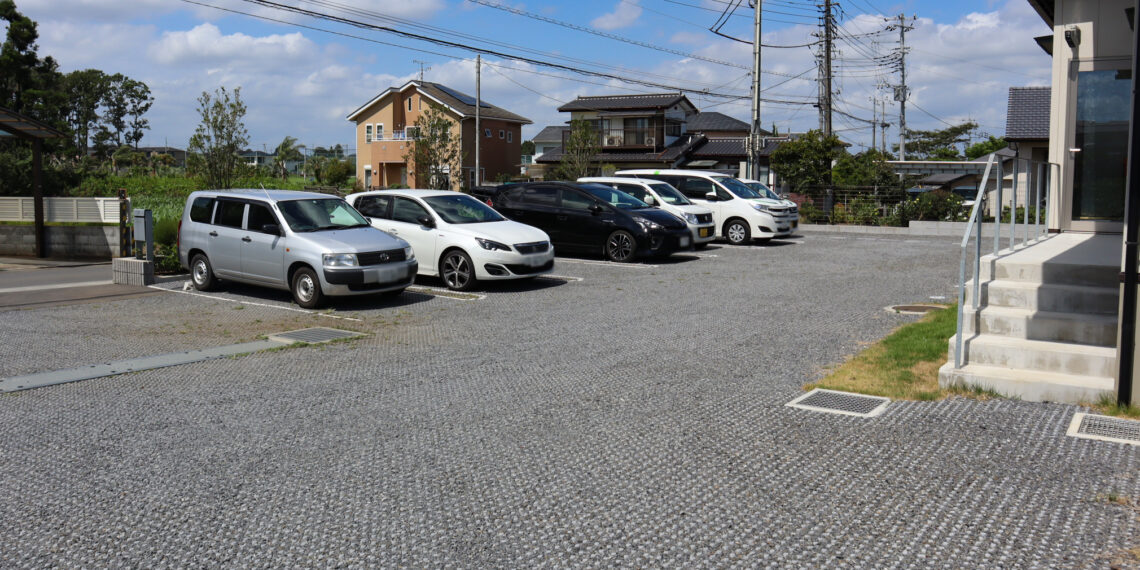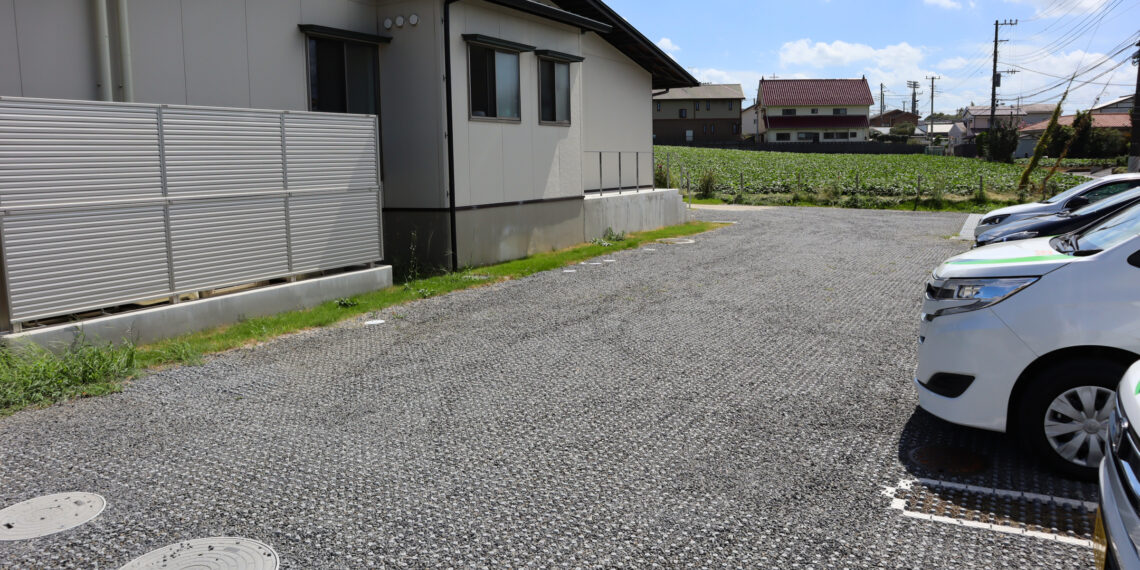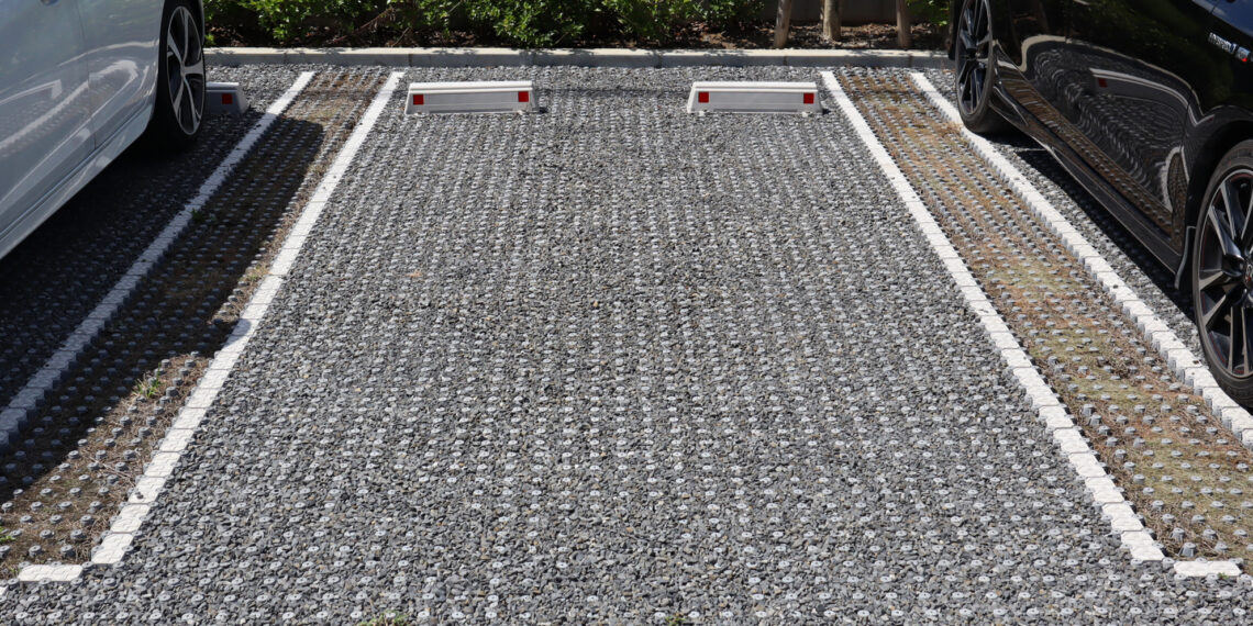 茨城県の民間施設にローングラベルをご使用いただきました。 ローングラベルは轍の発生や砂利の飛散を防ぐので 小規模~大規模な砂利駐車場で使われております。