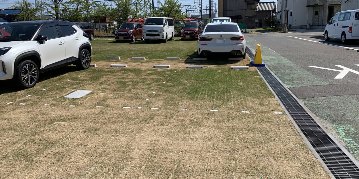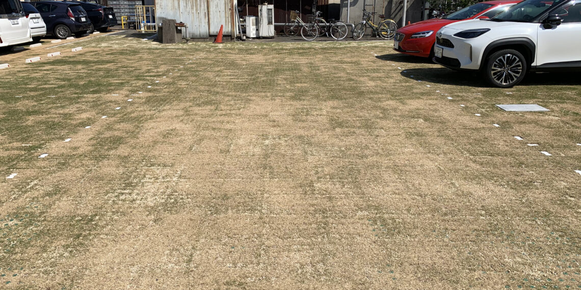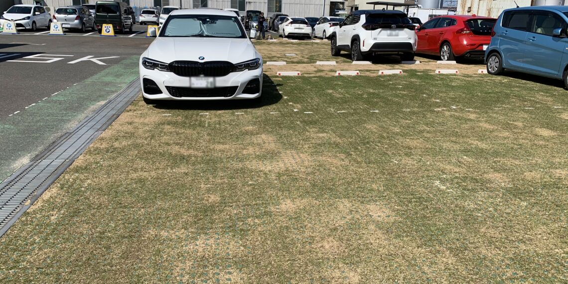 愛知県の民間企業にローンベースをご使用いただきました。 日照条件の良い場所なので、芝生が丈夫に成長しています。 ※茶色の芝生は冬枯れによるものです。