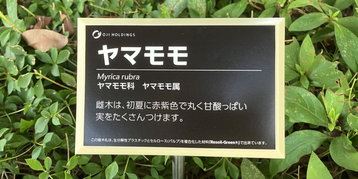 東京都の民間企業に樹名板をご使用いただきました。 こちらは王子エフテックスの「Resoil-Green」を使用した樹名板です。 素材にセルロースなどが含まれているため、自然に分解されるのが特徴です。